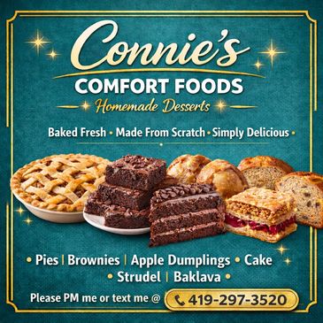 Visit us today to explore our delightful offerings and bring a taste of comfort to your table. Whether you're planning a special occasion or simply craving a sweet treat, Connie’s Comfort Foods is here to deliver smiles, one dessert at a time.